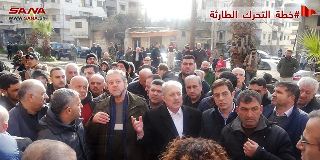 Arnous s’est également informé de la situation des familles touchées et qui étaient hébergées dans le centre d’accueil du stade de la ville de Jablé, qui abrite environ 1 000 personnes.