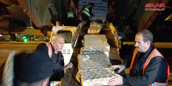 Un membre du bureau exécutif spécialisé du Conseil du gouvernorat d’Alep, Dr Abdel Qader Dawalibi, a indiqué dans une déclaration au correspondant de SANA que l’avion libyen transportait 40 tonnes d’aides humanitaires composées de denrées , de fournitures médicales et d’une ambulance pour soutenir les centres d’accueil dans le gouvernorat d’Alep.