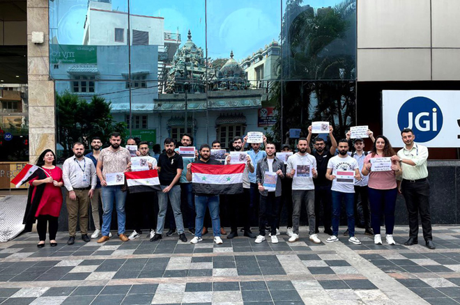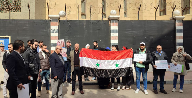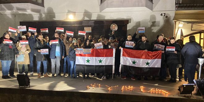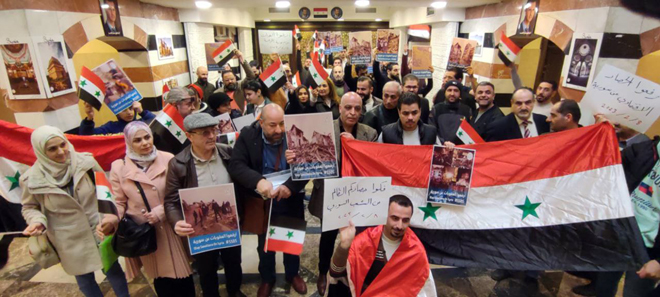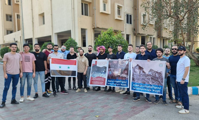 Capitales-SANA/Les étudiants syriens dans plusieurs pays du monde ont organisé un sit-in de solidarité pour soutenir les campagnes soutenant les personnes touchées par les répercussions du séisme et pour réclamer à la communauté internationale de lever les mesures économiques coercitives unilatérales imposées à la Syrie.