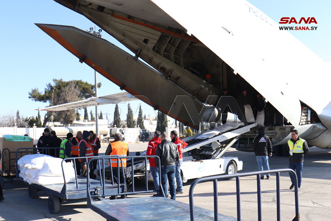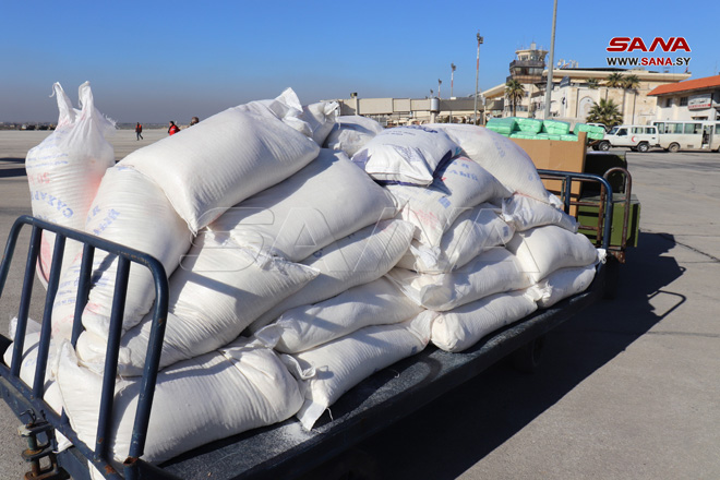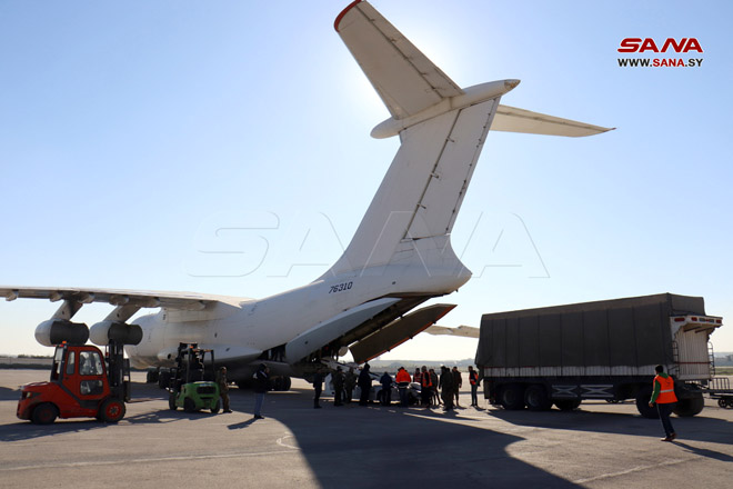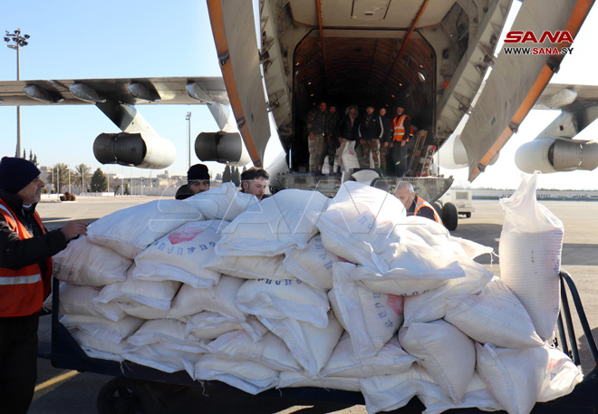 Alep-SANA / De nouvelles aides humanitaires sont arrivées ce matin à l’aéroport international d’Alep à bord d’un deuxième avion venant de l’Arménie.