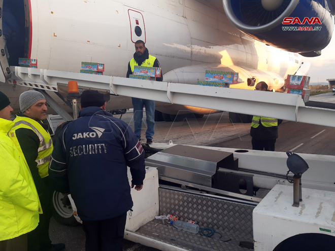 Dans une déclaration qu’il a donnée au correspondant de SANA, le directeur de l’aéroport, Ziyad Tawil, a fait savoir que la cargaison d’aide contient de la nourriture, des légumineuses et des jus.