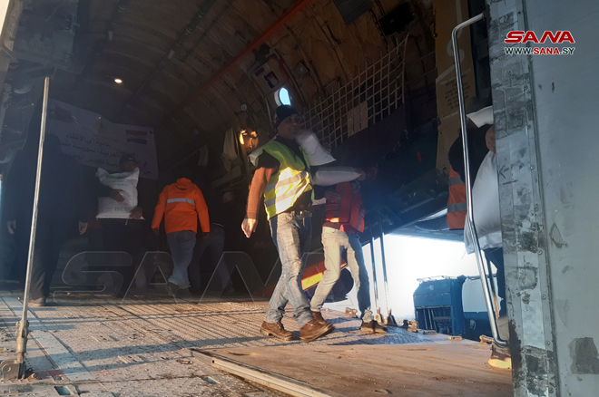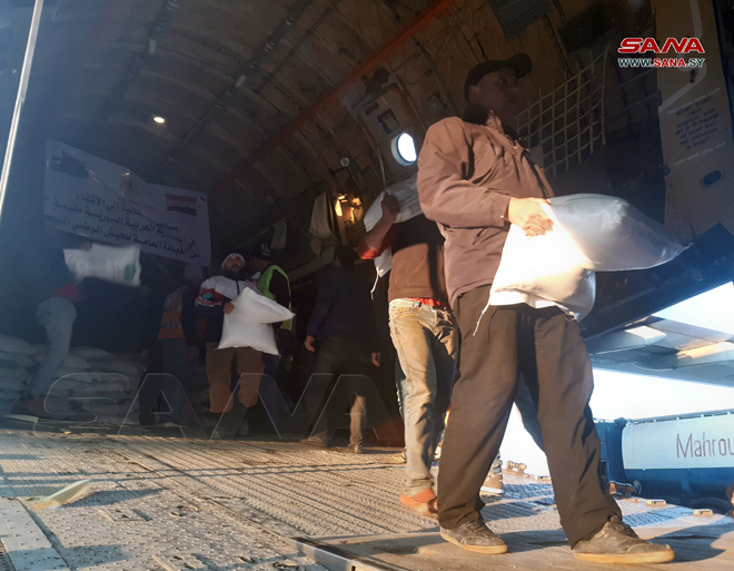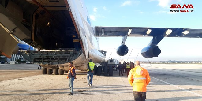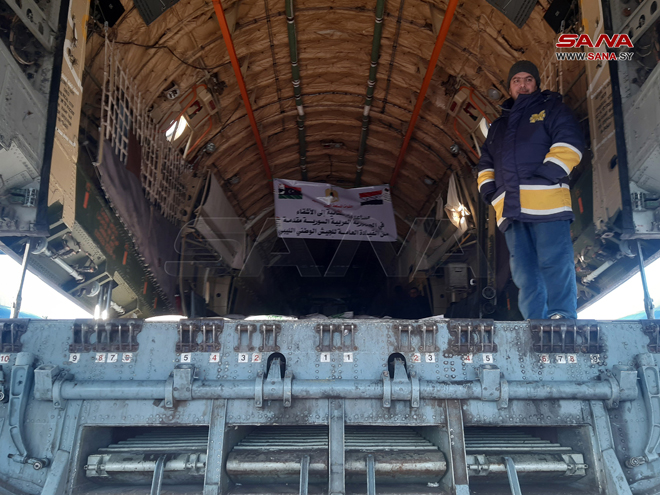 Lattaquié-SANA / Un avion libyen chargé de cargaisons d’aides de secours pour les sinistrés du tremblement de terre est arrivé aujourd’hui à l’aéroport international de Lattaquié.