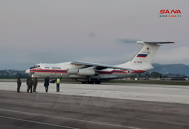 Lattaquié-SANA / Un avion chargé d’assistance, offerte par le ministère russe des Situations d’urgence aux sinistrés du tremblement de terre qui a frappé le pays, est arrivé à l’aéroport international de Lattaquié.
