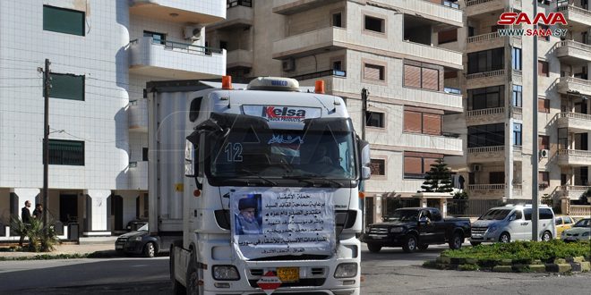 Lattaquié-SANA / Un convoi d’assistance irakien, comprenant 22 camions chargés de nourriture, de médicaments et de couvertures, est arrivé aujourd’hui au gouvernorat de Lattaquié.