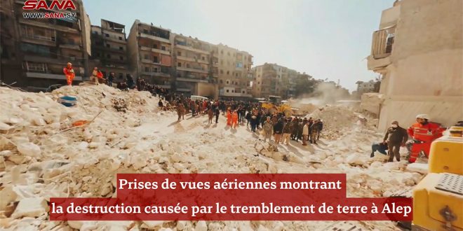 Prises de vues aériennes montrant la destruction causée par le tremblement de terre à Alep
