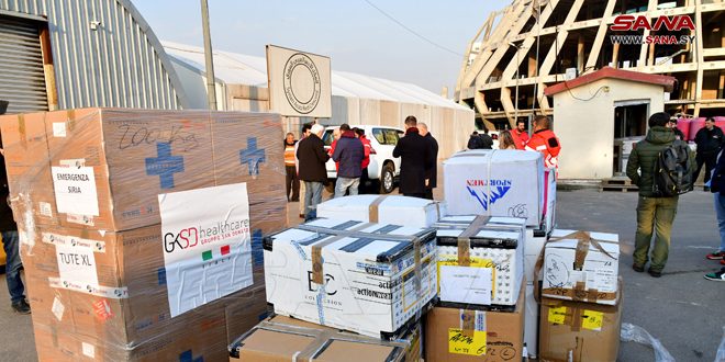 Dans une déclaration aux correspondants, le chef de l’Organisation du Croissant-Rouge, Khaled Hboubati, a déclaré que l’Italie était le premier pays européen à envoyer de l’aide à la Syrie pendant la crise actuelle, et cette aide inclut quatre ambulances et 6 paquets complets de fournitures médicales et du matériel de sauvetage nécessaire, pesant 30 tonnes.