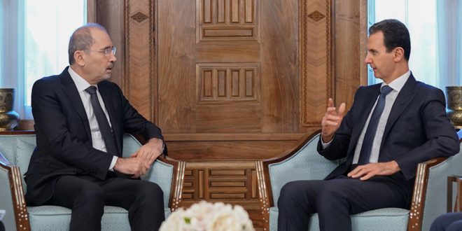 Damas-SANA/ le président Bachar al-Assad a reçu aujourd’hui, Ayman Safadi, vice-Premier ministre et ministre des Affaires étrangères et des Expatriés de Jordanie.