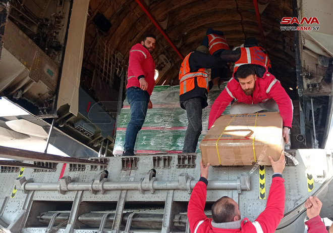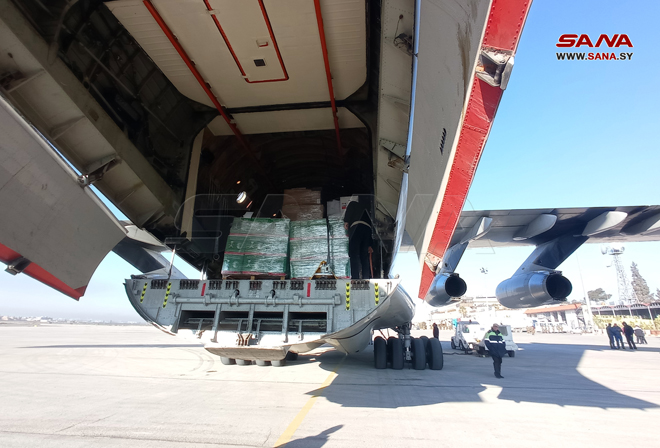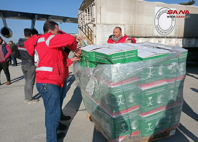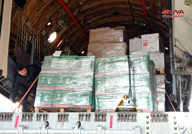 Alep –SANA/Un avion saoudien transportant des aides de secours pour les sinistrés par le tremblement de terre est arrivé aujourd’hui à l’aéroport international d’Alep.