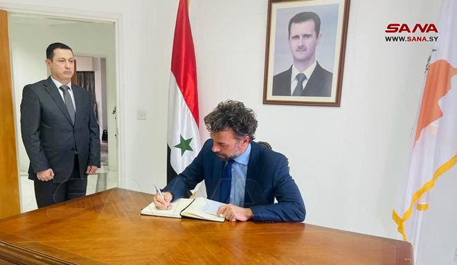 Nicosie – SANA/ Un représentant du ministère chypriote des Affaires étrangères a présenté ses condoléances pour les victimes du tremblement de terre en Syrie, lors de sa visite aujourd’hui au siège de l’ambassade de Syrie à Nicosie, exprimant la tristesse du gouvernement et du peuple chypriote pour le peuple syrien et leur sympathie aux familles des victimes.