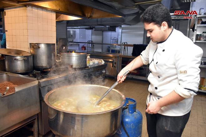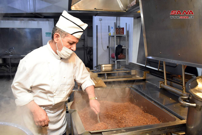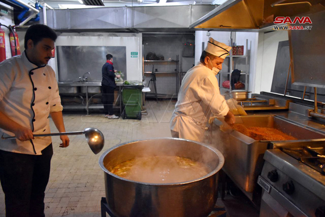 Hama-SANA/Le gouvernorat de Hama et le Trust syrien pour le développement ont distribué aujourd’hui une aide alimentaire fournie par la Fédération de Russie aux sinistrés du tremblement de terre de l’Institut pour les sourds-muets à Hama.