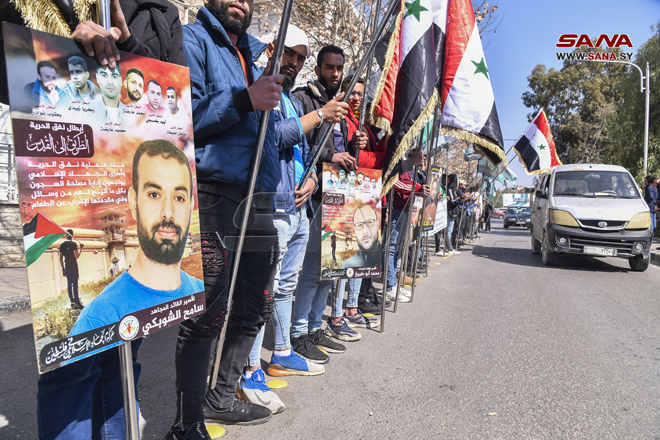 Le correspondant de SANA a fait savoir que le sit-in vient en solidarité avec les détenus palestiniens dans les geôles de l’occupation et pour réclamer la levée de l’embargo injuste impose à la Syrie.