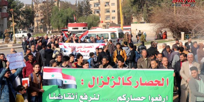 Daraa-SANA/La population de Daraa a organisé aujourd’hui, un sit-in de protestation contre les mesures coercitives unilatérales imposées au peuple syrien.