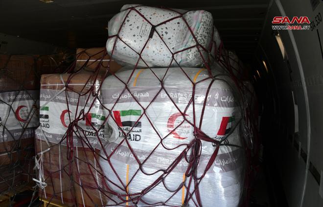 Le directeur de l’aéroport, Ziad al-Taweel, a indiqué à la correspondante de SANA qu’un avion d’aide émirati, est arrivé à l’aéroport international de Lattaquié, pour les sinistrés du tremblement de terre, et que l’avion est chargé de 26 tonnes de nourriture et d’aide humanitaire.