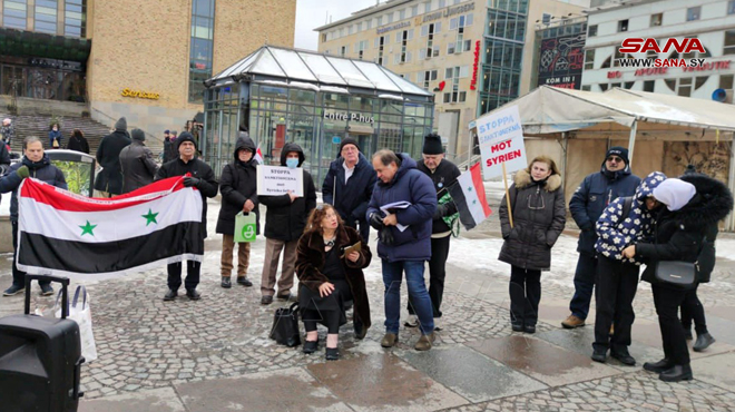 Sit-in de solidarité observé dans la capitale suédoise pour réclamer la levée de l’embargo injuste visant la Syrie, le 25-2-2023