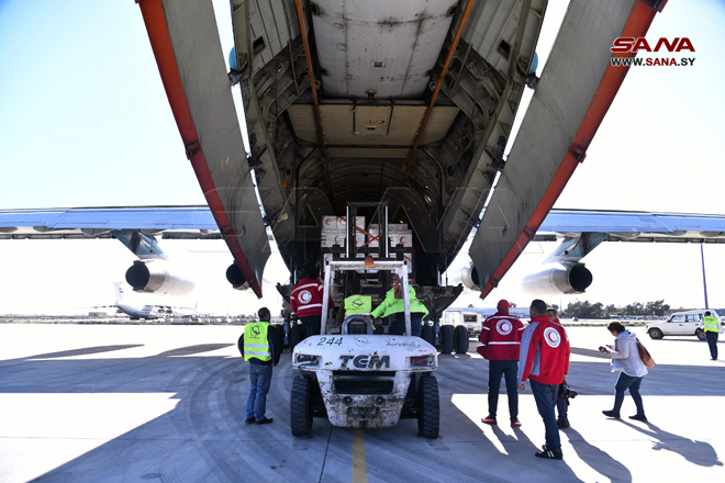 Un avion portant à bord 24760 kg d’aides alimentaires et de secours est arrivé à l’aéroport international de Damas, alors que deux avions ont atterri dans l’aéroport international de Lattaquié avec à bord 25 tonnes d’aides pour le premier et 24 tonnes pour le deuxième et qu’un autre avion portant à bord 30800 kg de nourriture pour les sinistrés du tremblement de terre est arrivé à l’aéroport international d’Alep.