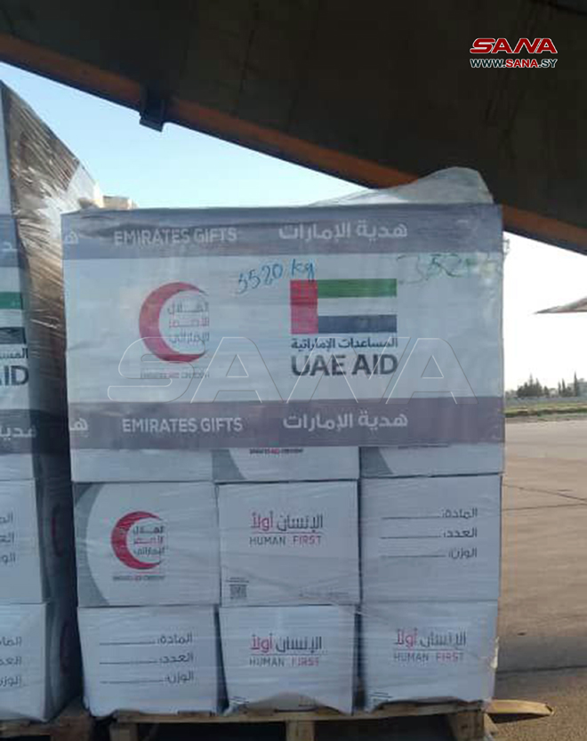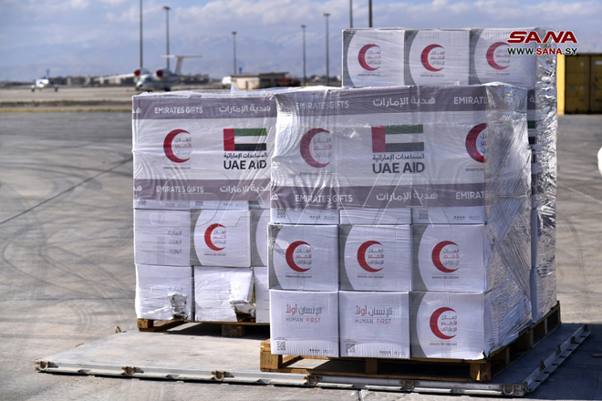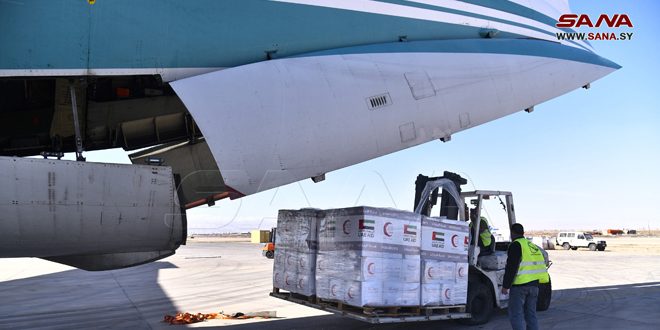 Gouvernorats-SANA / Quatre avions émiratis ont atterri aujourd’hui dans les aéroports de Damas, Lattaquié et Alep, avec à bord de l’assistance de secours pour les sinistrés à cause du tremblement de terre qui avait frappé la Syrie le mois dernier.