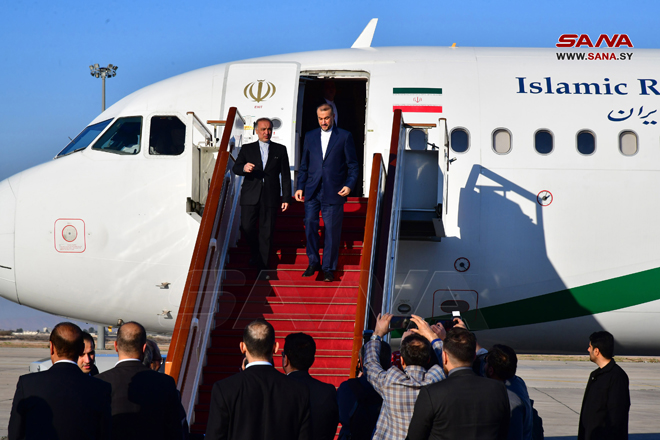 Damas-SANA / Le ministre iranien des Affaires étrangères, Hossein Amir Abdollahian, est arrivé cet après-midi à l’aéroport international de Damas après qu’il était en visite au gouvernorat de Lattaquié pour apporter le soutien de son pays à la Syrie afin de surmonter les effets du tremblement de terre.