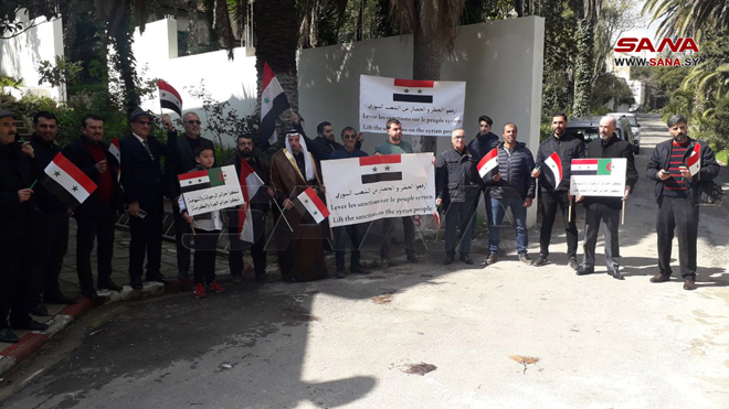 Sit-in de solidarité avec la Syrie en Algérie pour faire face aux mesures coercitives unilatérales et iniques qui lui sont imposées, le 4-3-2023