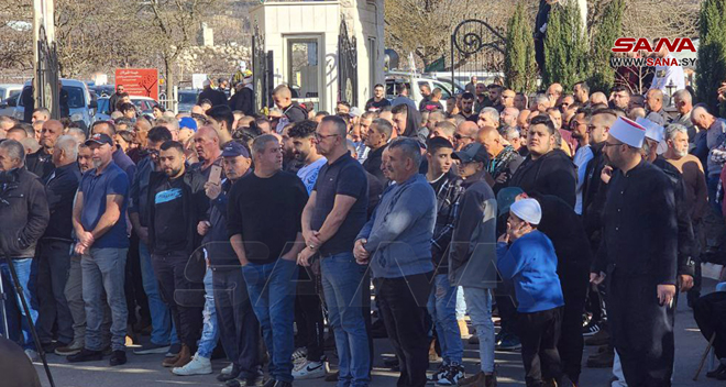 Sit-in de protestation observé par nos compatriotes au Golan syrien occupé, en rejet du plan de judaïsation de l’occupation israélienne visant à installer de turbines éoliennes sur leurs terres, le 4-3-2023