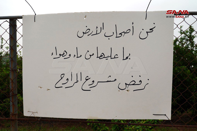 Dans des déclarations au correspondant de SANA, un certain nombre d’habitants du Golan ont indiqué que l’implantation des turbines éoliennes dans la zone située au milieu des villages du Golan étouffera et démembrera ces villages, et limiter leur expansion urbaine.