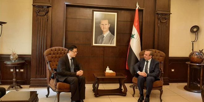 Damas-SANA/ Le ministre de l’Administration locale et de l’Environnement, Hussein Makhlouf, a examiné avec l’ambassadeur chinois en Syrie, Shi Hongwei, les moyens de consolider la coopération dans la nouvelle phase du rétablissement rapide, et de la reconstruction dans tous les domaines, dont les projets qui contribuent au retour des sinistrés du fait du tremblement de terre à leurs maisons dès que possible.