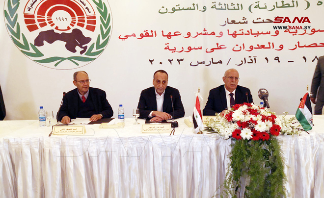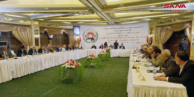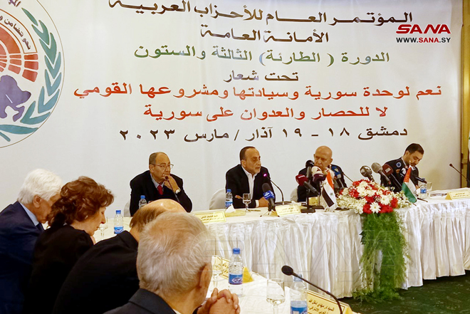 Damas-SANA/Les travaux de la réunion du Secrétariat général de la Conférence d’urgence des partis arabes dans sa 63e édition, sont lancés aujourd’hui, sous le titre « Oui à l’unité, à la souveraineté et au projet national de la Syrie… Non à l’embargo et à l’agression contre la Syrie ».