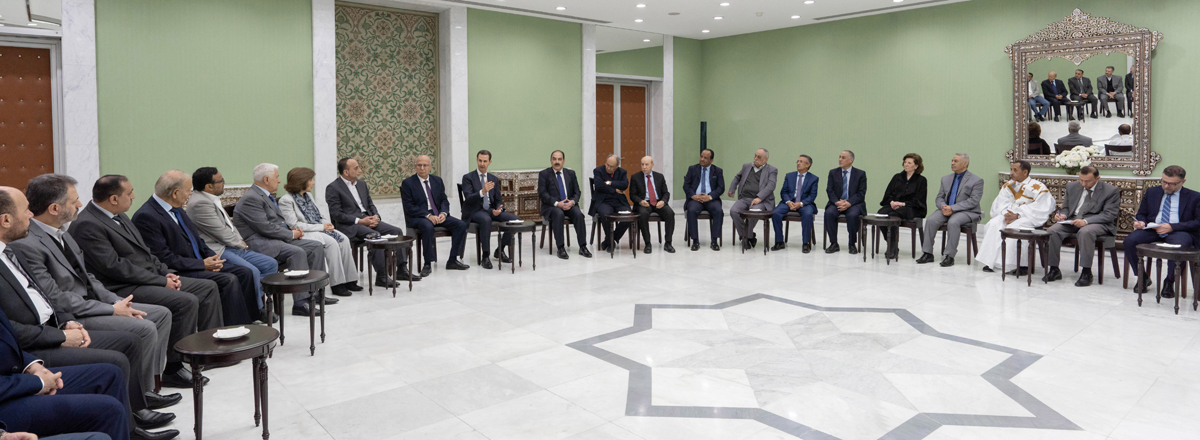 Damas-SANA / Le président Bachar al-Assad a rencontré aujourd’hui les membres du Secrétariat général du Congrès des partis arabes qui tient sa réunion extraordinaire à Damas.