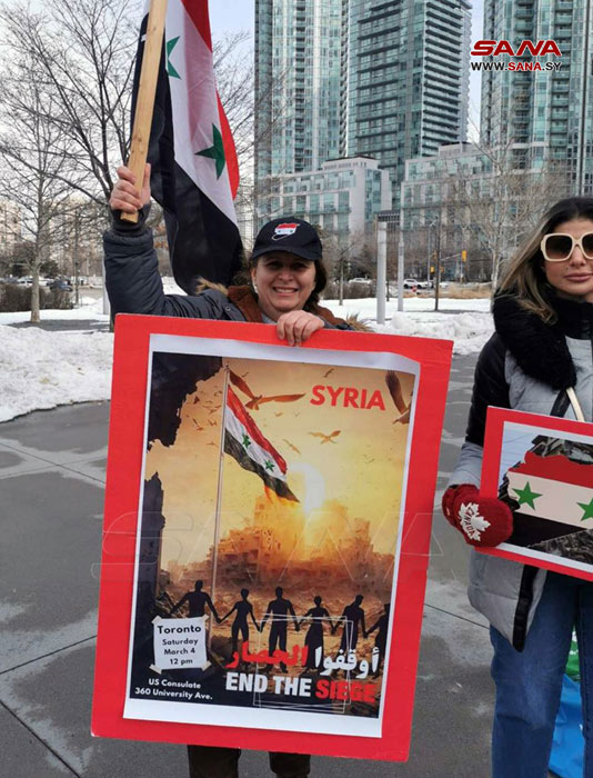 La communauté syrienne au Canada a aussi observé un sit-in dans la ville de Mississauga appelant à la levée des sanctions injustes qui ont des répercussions inhumaines sur le peuple syrien.