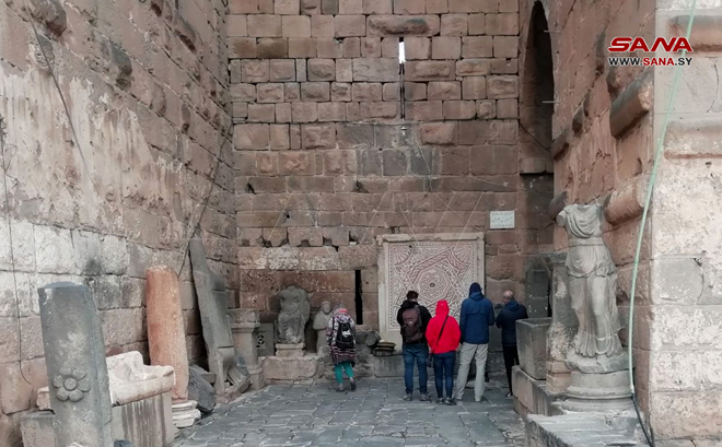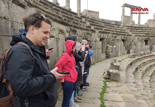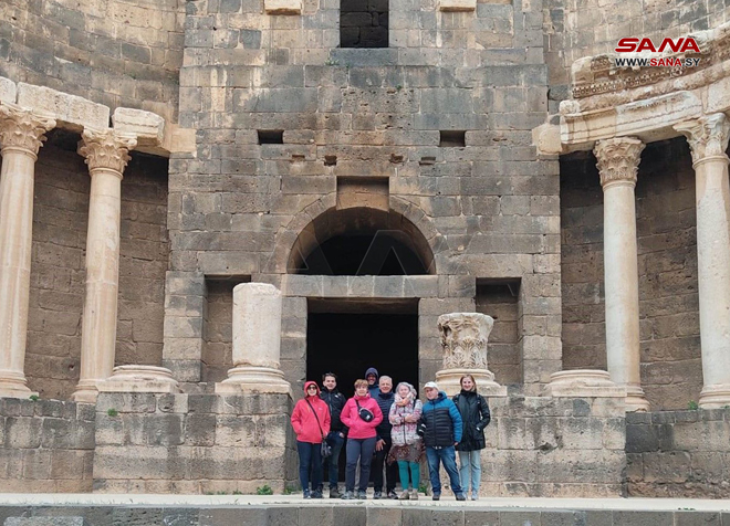 Daraa-SANA/ Un groupe de touristes irlandais a visité la ville de Busra Al-Sham aujourd’hui et a été informé de ses monuments archéologiques.