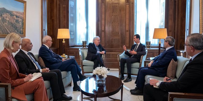 Damas-SANA / Le président Bachar al-Assad, s’est entretenu avec Martin Griffiths, Secrétaire général adjoint de l’ONU aux affaires humanitaires et Coordonnateur des secours d’urgence, des mesures pratiques qui auraient un impact ou des résultats directs sur le rétablissement des effets du tremblement de terre dans les différents secteurs et qui contribueraient à la création des circonstances appropriées pour le retour de davantage de réfugiés syriens à leurs villes et villages.