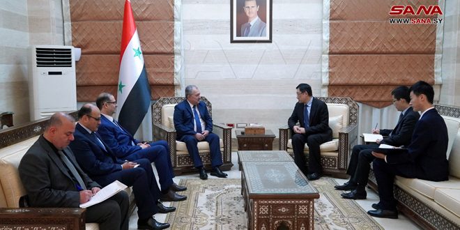 Damas-SANA / Le président du Conseil des ministres, Hussein Arnous, a examiné avec l’ambassadeur de Chine à Damas, Shi Hongwei les moyens de renforcer les relations bilatérales dans divers domaines et les mécanismes pour améliorer les relations économiques.