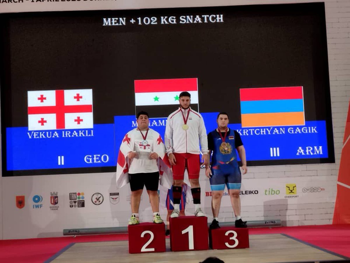 Le joueur de l’équipe syrienne d’haltérophilie remporte la médaille d’or du Championnat du monde de la catégorie (-17) en Albanie, le 1-4-2023