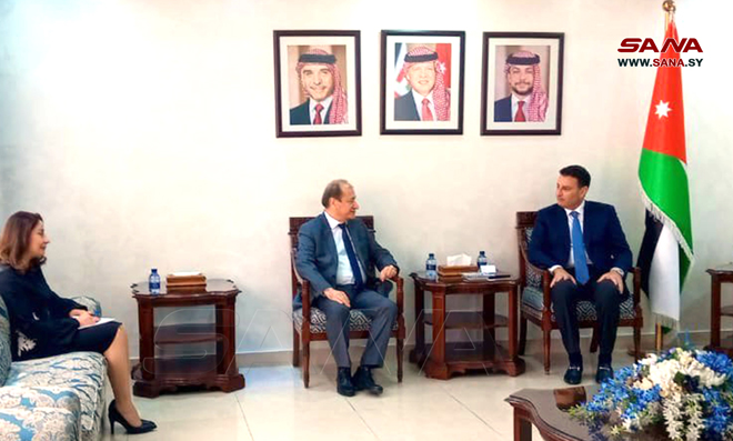 Amman-SANA/ Le Président du Conseil des députés jordanien, Ahmed al-Safadi, a examiné avec le chargé d’affaires de l’ambassade syrienne à Amman, l’ambassadeur Issam Nayyal, les moyens de consolider la coopération parlementaire bilatérale, et plusieurs questions d’intérêt commun.