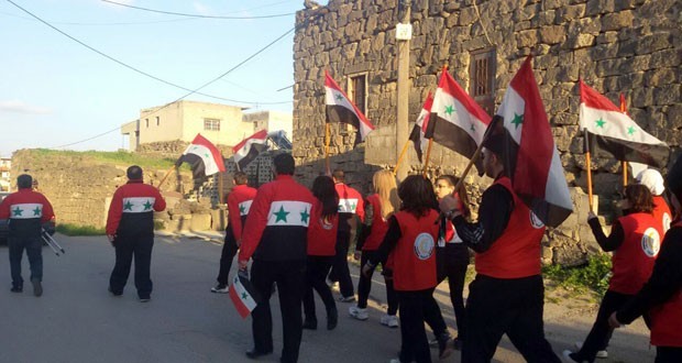 Daraa / Le Rassemblement des jeunes de l’unité nationale est arrivé aujourd’hui à la ville de Sanamayne à Daraa, partant à pied depuis la ville d’Izraa, en portant la lettre la plus longue du monde de la loyauté à la Patrie et au président Bachar al-Assad.