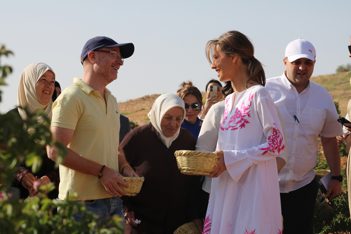 Les dames du Club diplomatique en Syrie, des personnalités culturelles et artistiques et des personnalités concernées par la préservation du patrimoine syrien ont rejoint la récolte de la Rose damascène.