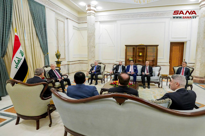 Le président Rachid a indiqué l’importance de la coopération entre les deux pays afin d’éradiquer les restes du terrorisme et de contrôler les frontières de manière à consolider la sécurité et la stabilité, soulignant que l’Irak a toujours insisté sur l’importance de développer les relations avec la Syrie.