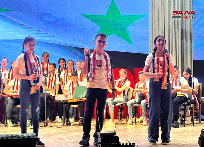 Lors de l’activité, qui s’est déroulée avec la participation de l’ambassadeur syrien à Minsk, Muhammad al-Amrani, et des membres de l’ambassade, les enfants syriens ont présenté un certain nombre de représentations artistiques nationales et traditionnelles du patrimoine syrien qui reflètent l’histoire de la Syrie, sa civilisation et l’identité du patrimoine national syrien.