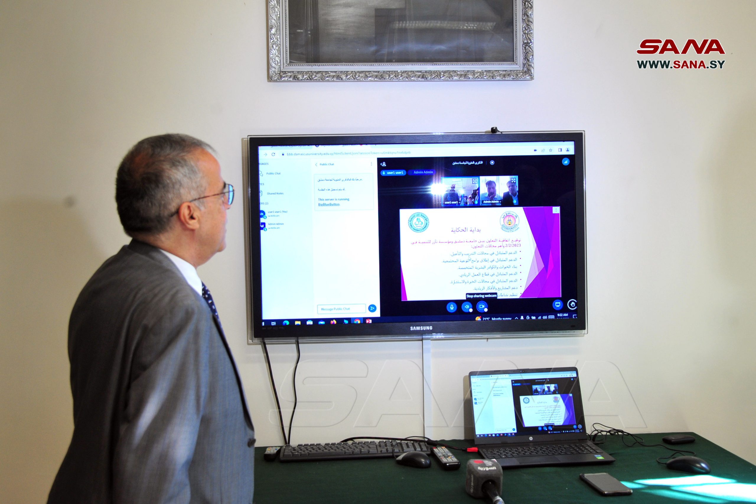 Damas-SANA / À l’occasion du centenaire de la fondation de l’université de Damas, une plateforme électronique a été lancée aujourd’hui en collaboration avec la Fondation TAAZUR pour le développement, dans le bâtiment de l’université.