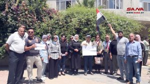 Les participants à Quneitra ont également exprimé, lors d’un sit-in de solidarité organisé dans la ville d’Al-Baath, leur fierté des positions patriotiques et héroïques de notre peuple à Majdal Shams, Baqata, Massada et Ain Quniyah pour défendre leur terre.