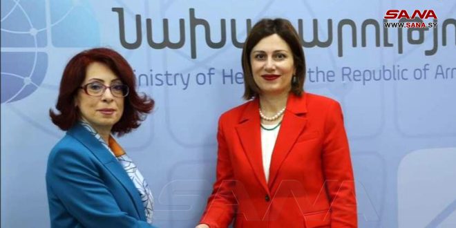 Erevan – SANA / La ministre arménienne de la Santé, Anahit Avanesyan, a discuté avec l’ambassadrice de Syrie en Arménie, Nora Arissian, ainsi que le troisième secrétaire Ahmed Al-Adhaba, des moyens de coopération dans le secteur de la santé entre la Syrie et l’Arménie.