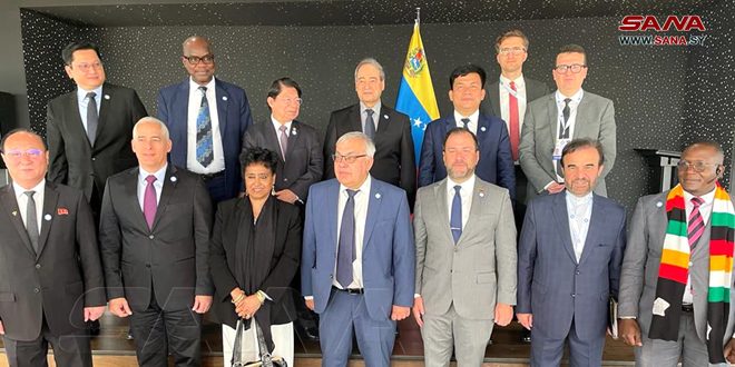 Bakou-SANA/ Le ministre vénézuélien des Affaires Etrangères, dont le pays préside le Groupe des amis pour la défense de la Charte des Nations Unies, a organisé une cérémonie commémorant le 2e anniversaire de la création du Groupe, et ce, dans le cadre des activités organisées en marge des travaux de la réunion des ministres des Affaires Etrangères des pays du Mouvement non-alignés qui a lieu actuellement à Bakou, avec la participation du ministre des Affaires Etrangères et des Expatriés, Fayçal Miqdad et la délégation qui l’accompagne.