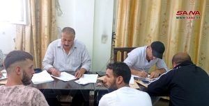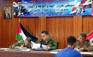 Quneitra-SANA/Des dizaines de personnes recherchées du gouvernorat de Quneitra qui ont échappé au service militaire et de police et qui ont un problème de sécurité ou militaire ont rejoint le processus de régularisation aujourd’hui dans la ville de Baath à Quneitra.