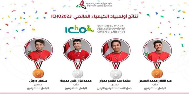 Damas-SANA/ L’équipe de l’Olympiade scientifique syrienne a gagné deux médailles en argent et deux autres en bronze aux Olympiades internationales de chimie organisées en Suisse, avec la participation d’étudiants de 90 États.