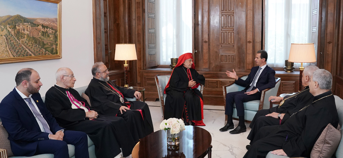 Damas-SANA/ Le président Bachar al-Assad a rencontré aujourd’hui une délégation des archevêques arméniens catholiques, présidée par le Patriarche Raphaël Bedros XXI Minassian, Patriarche de Cilicie des Arméniens, qui était arrivé en Syrie pour une visite pastorale.