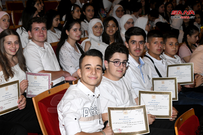 Lors de la cérémonie, le ministre de l’Éducation, Mohammad Amer Mardini, a fait noter : “Cet hommage couronne un chemin d’étude de plus de cent soixante-dix élèves de différents gouvernorats syriens, dont les parents et enseignants ont l’influence la plus importante sur leur réussite académique”.