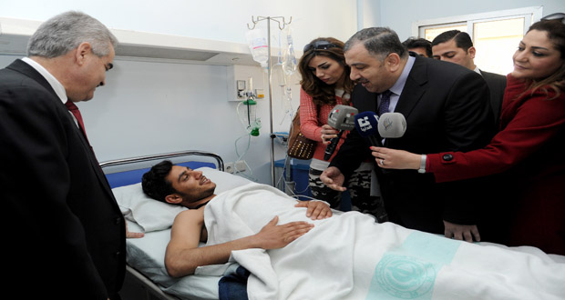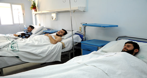 26/03/2015 D.H./ M.Ch. Une délégation du ministère de l'Industrie rend visite aux blessés de l'armée à l'hôpital du martyr Youssef al-Azmah 2015-03-26 dima Share tweet