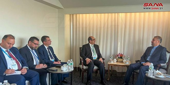 New York-SANA/ Le chef de la délégation de la République arabe syrienne à la 78ème session de l’Assemblée générale des Nations Unies, l’ambassadeur Bassam Sabbagh, a examiné avec le ministre iranien des Affaires étrangères Hossein Amir Abdollahian les moyens de renforcer les relations bilatérales stratégiques et distinguées entre les deux pays.