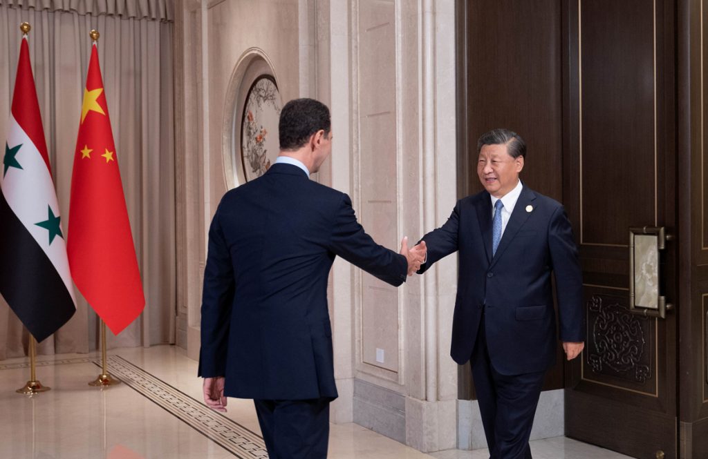 Le président Xi Jinping a déclaré : « Depuis soixante-sept ans, les relations syro-chinoises sont restées solides face aux changements des situations internationales, et l’amitié reste historique et solide dans le temps, soulignant que son pays souhaite renforcer la coopération avec la Syrie dans le cadre de l’initiative “la Ceinture et la Route”, et elle soutient l’adhésion de la Syrie à l’Organisation de Shanghai en tant que partenaire. Elle soutient également fermement les efforts de la Syrie contre l’ingérence extérieure, rejette la présence des forces illégales sur le territoire syrien, exhorte les pays à lever les sanctions et l’embargo économiques illégaux, et soutient le renforcement des capacités syriennes dans la lutte contre le terrorisme.