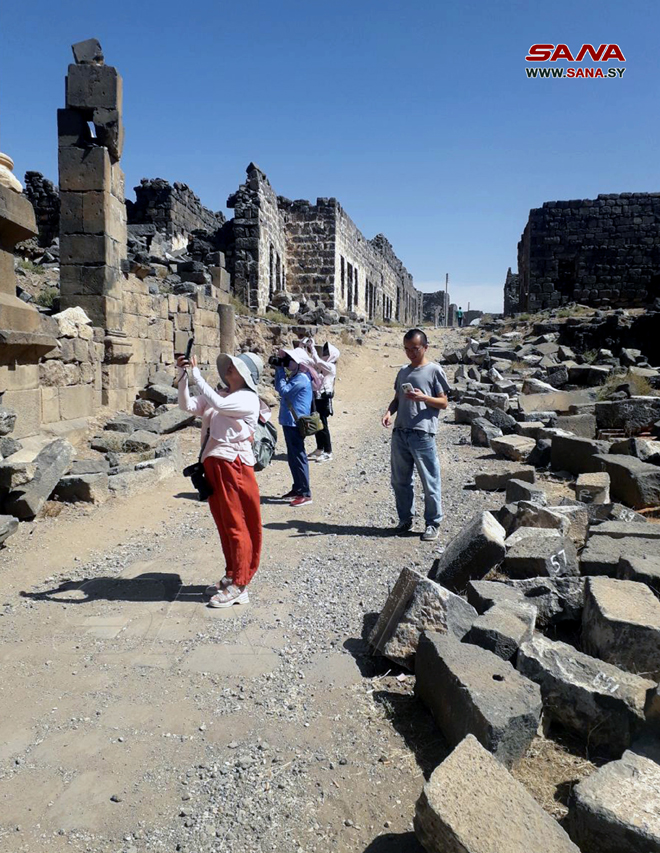 Daraa – SANA / Un groupe de touristes de la République populaire de Chine, comprenant des professeurs d’université, des directeurs et des hommes d’affaires des amis de l’UNESCO et de la chaîne de télévision, Géographic, a visité la ville antique de Bosra Cham à Daraa.