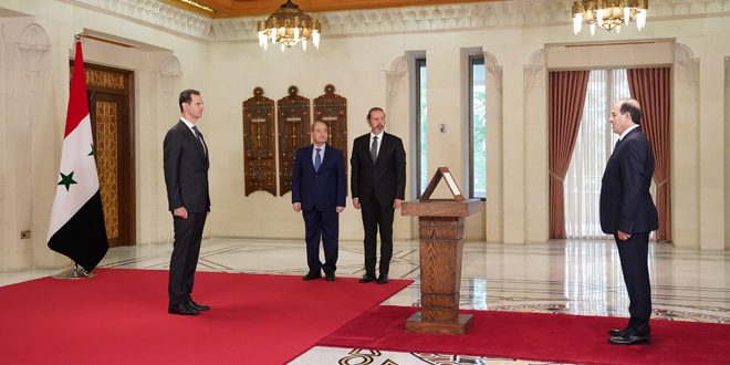 La prestation de serment s’est déroulée en présence de Fayçal Miqdad, ministre des Affaires étrangères et des Expatriés, et de Mansour Azzam, ministre des Affaires de la présidence de la République.